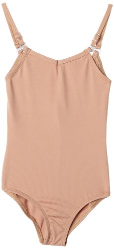 This Capezio® camisole leotard features adjustable and removable straps, a low scoop back and a ballet cut leg line. Child leotard is fully front lined in nude and suntan colors only. Hand wash in cold water, hang dry.
